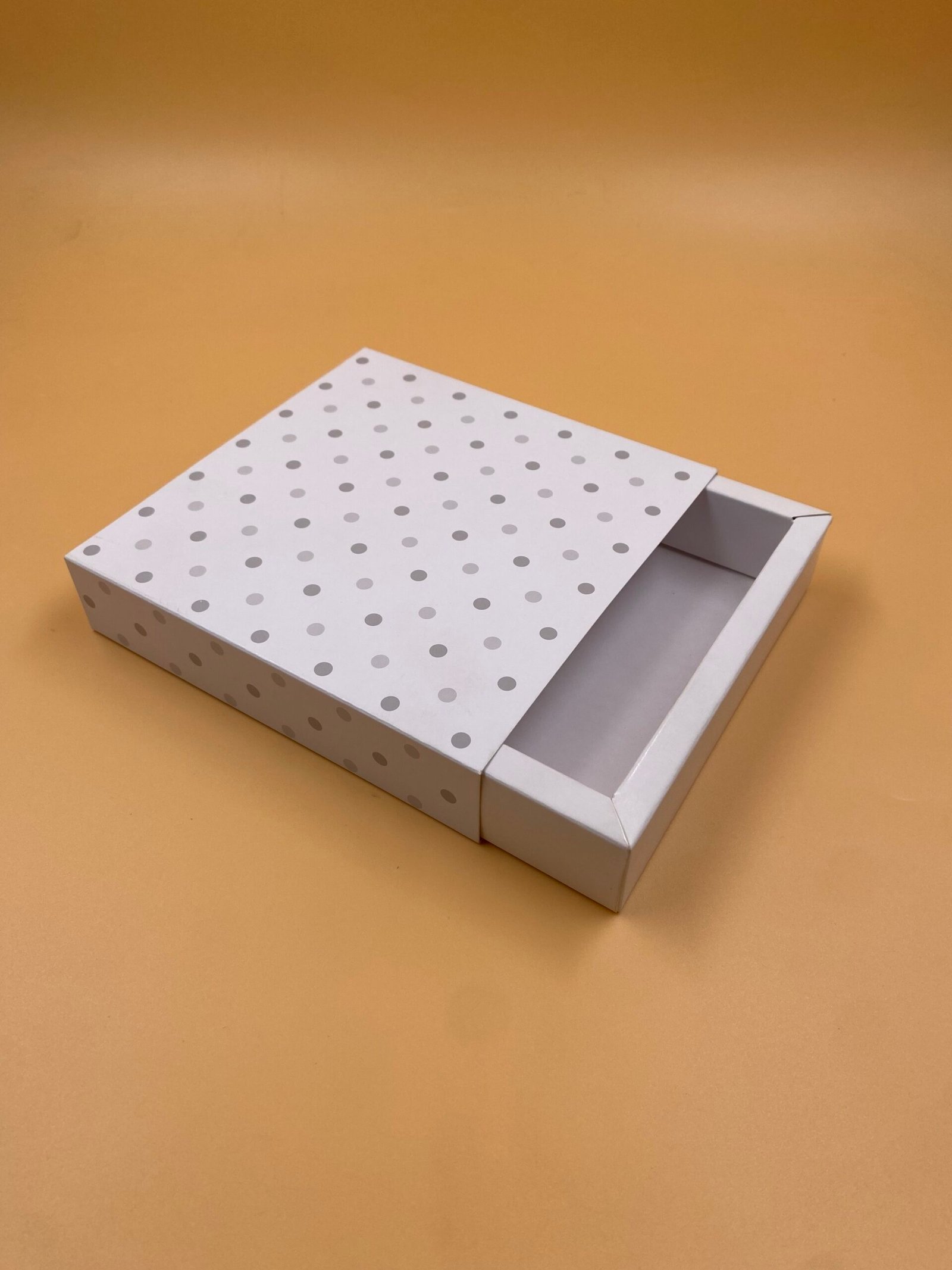 CAJA DESLIZABLE lunares 15x15x3cm (13x13x3cm interior) cantidad